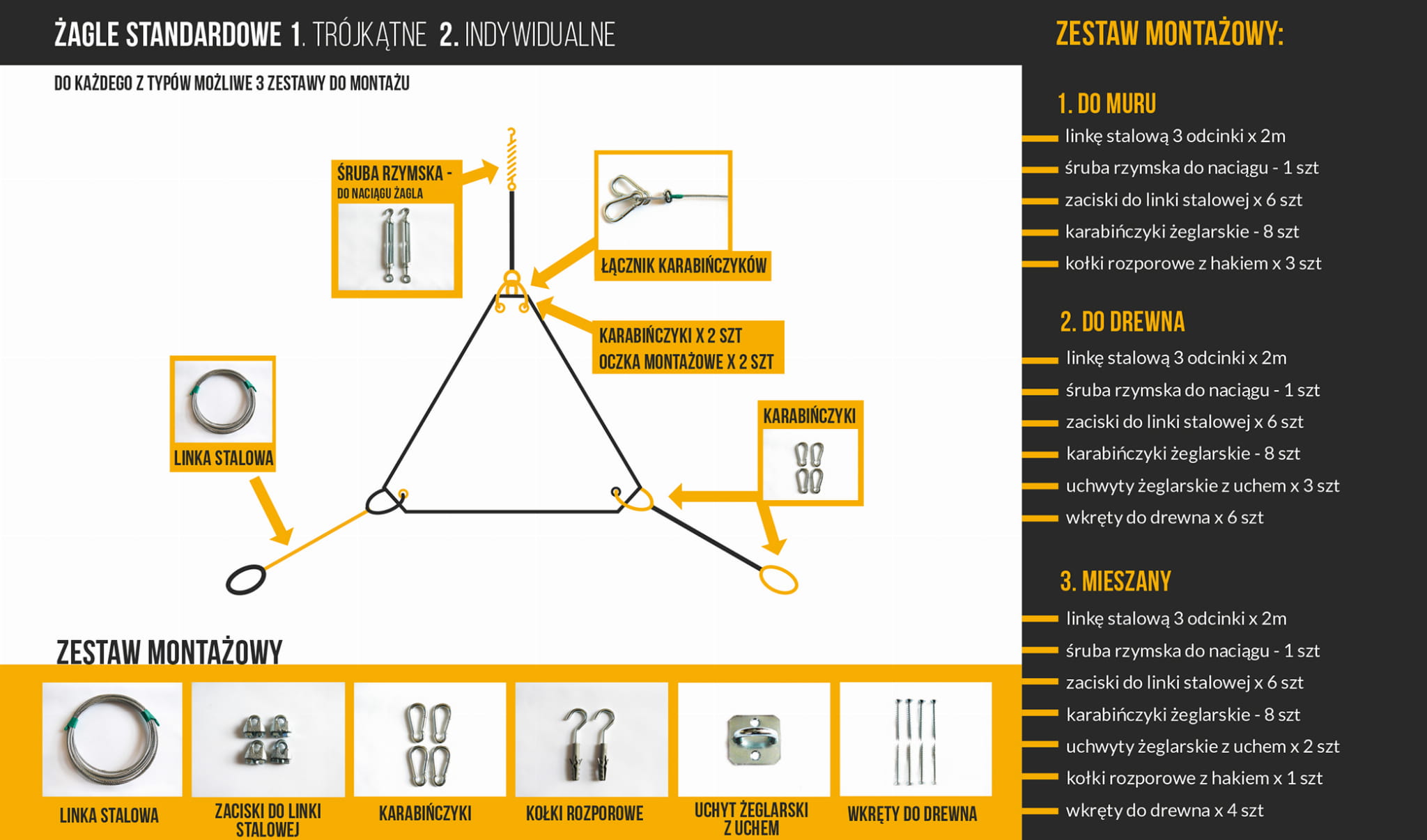 - żagiel jest gotowy do montażu – został wykończony metalowymi oczkami,