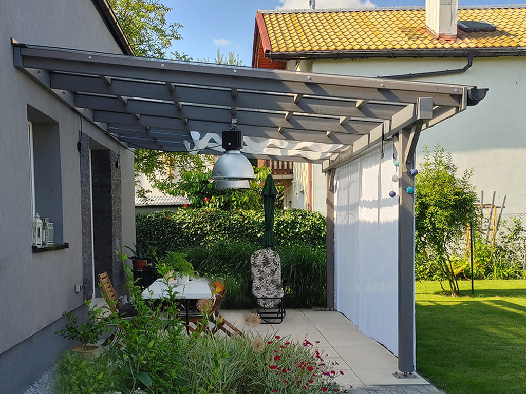 Przykłady zastosowania:- stworzenie strefy cienia i osłona przed wiatrem nad tarasem wypoczynkowym,