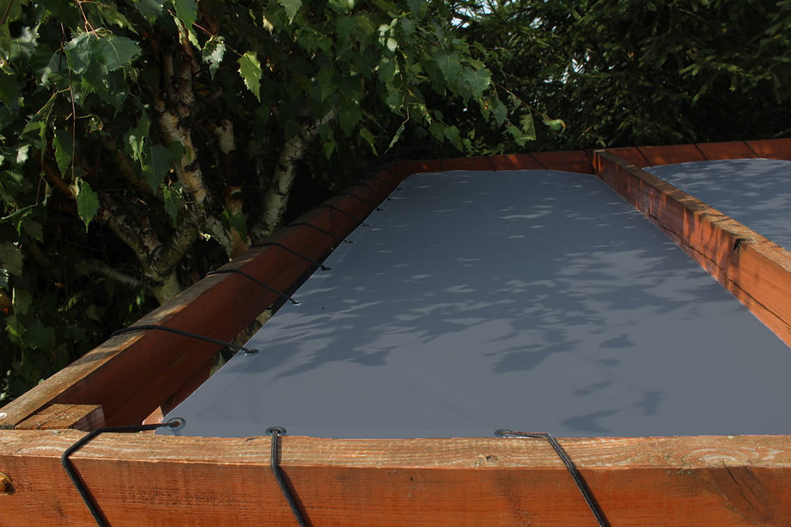 - wykonany z bardzo mocnej tkaniny HDPE 285 g/m², która bardzo mocno chroni przed słońcem,