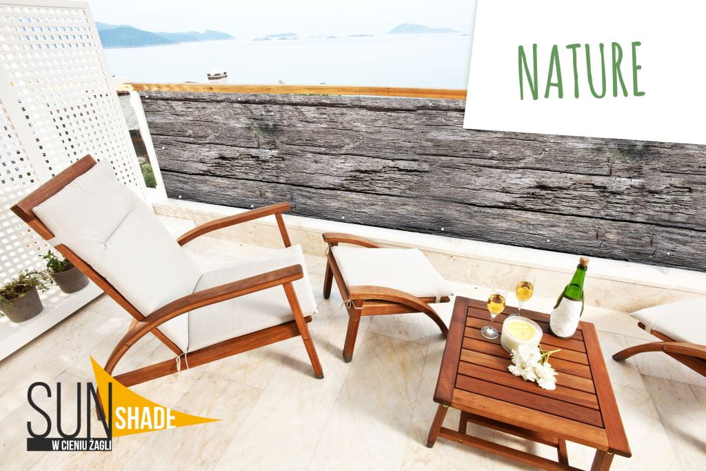 - materiał – fabrycznie biała siatka poliestrowa 270 g/m2 z którego jest wykonany żagiel chroni przed promieniami słonecznymi i przepuszcza deszcz. Przepływające strugi deszczu sprawiają, że produkt sam się oczyszcza - a woda, która w ten sposób nie zalega - nie osłabia materiału i elementów montażowych