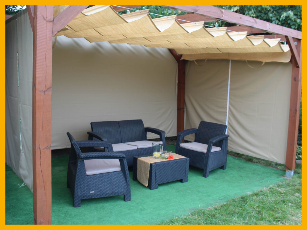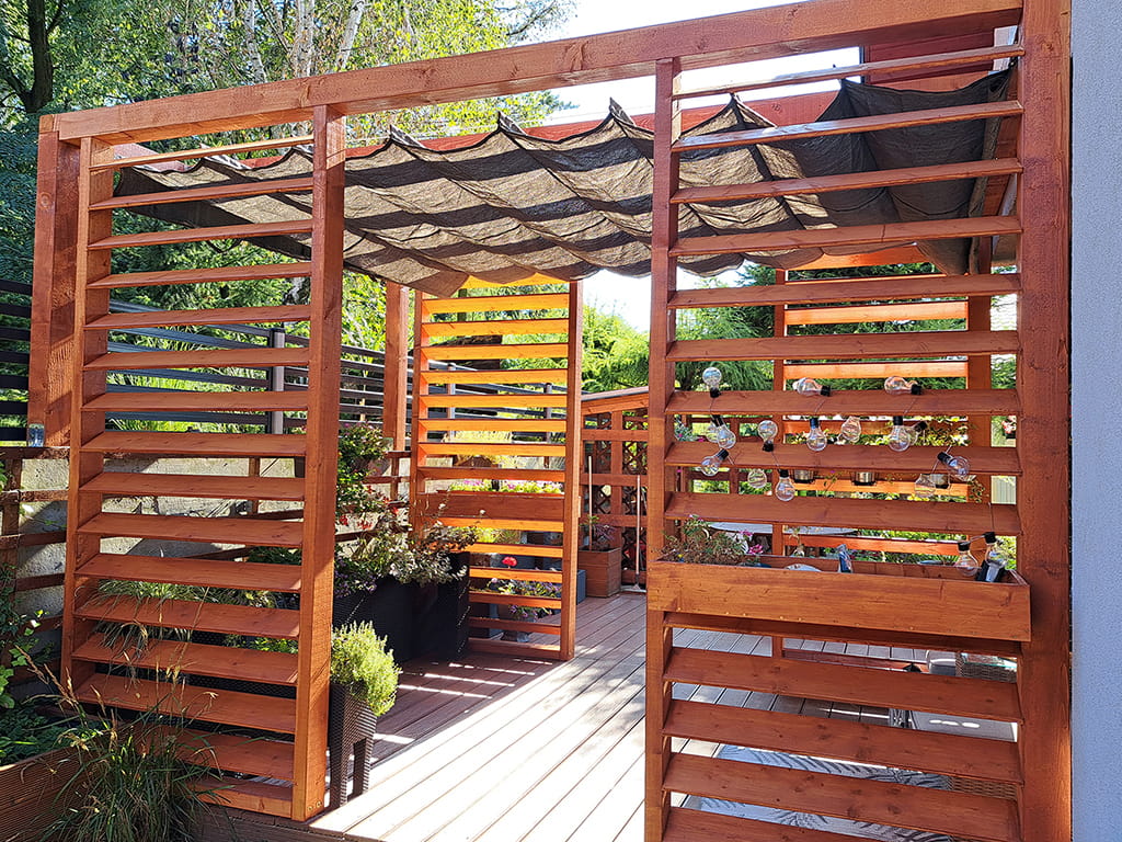 Rolety poziome idealnie nadają się na zacienienie altan, pergoli oraz balkonów.