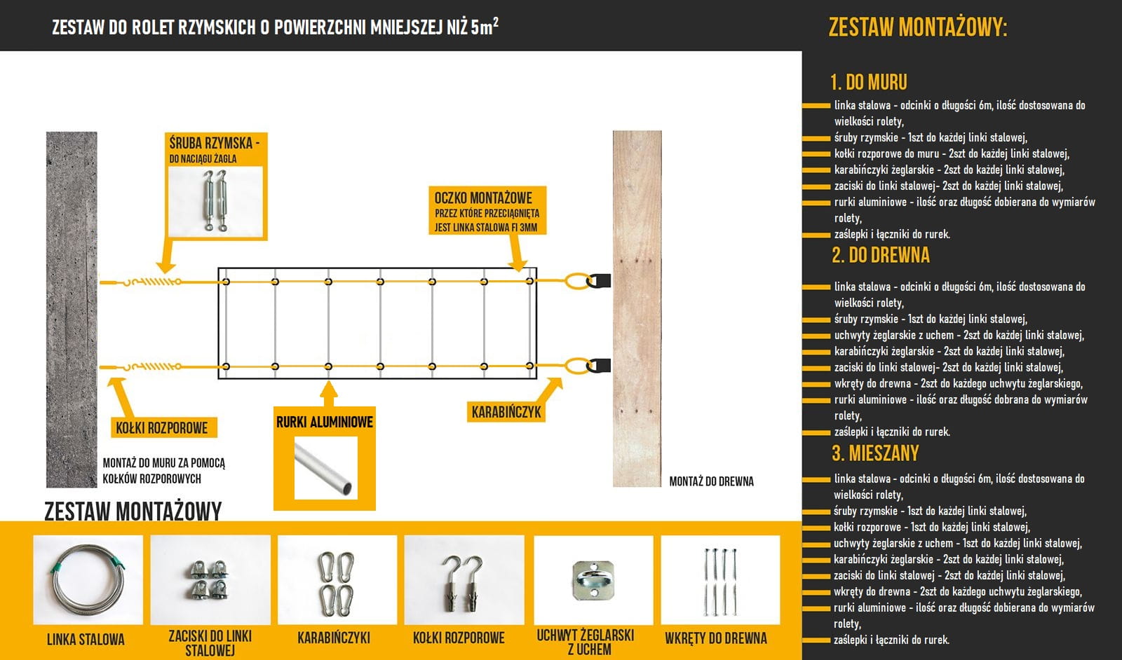 Aluminiowe rurki nie są częścią zestawu ze żaglem – wchodzą w skład zestawu montażowego.