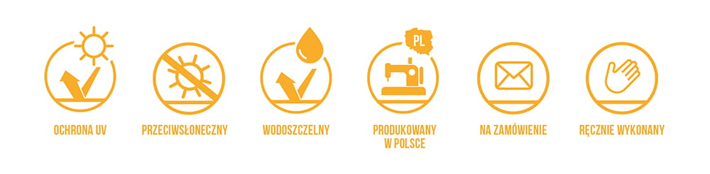 - wykonany z mocnej tkaniny typu premium Decor 200gr/m2, która chroni przed lekkim deszczem,