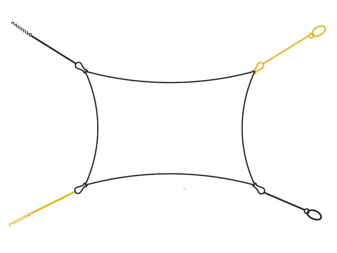 Przy zamówieniu żagla z bokami prostymi, trudniej jest napiąć krawędzie żagla.