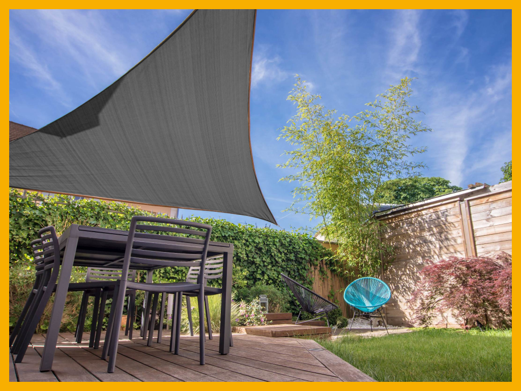 Żagiel przeciwsłoneczny z HPDE - trójkąt 5,96 x 3,52 x 6,80 m