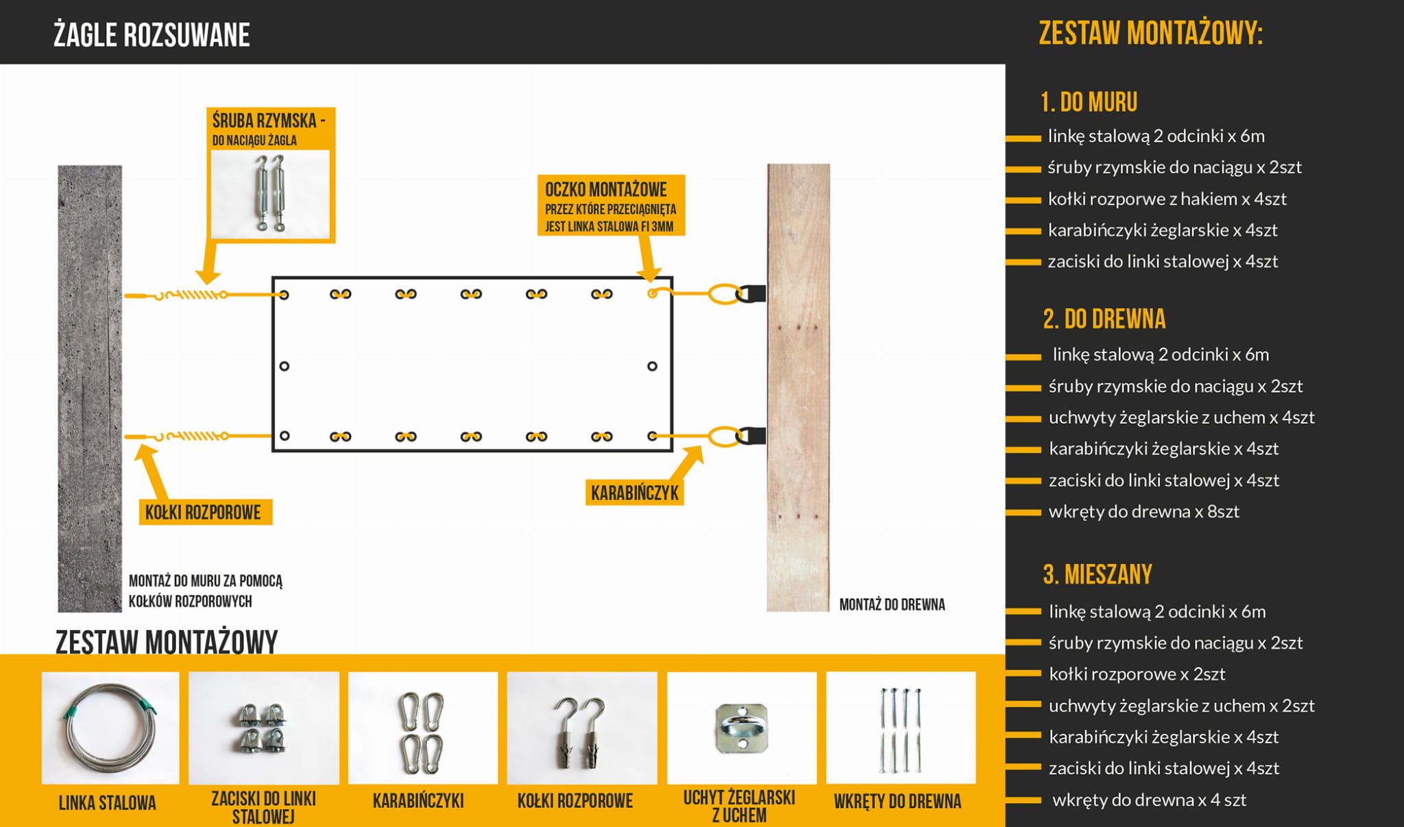 Akcesoria do montażu są dostępne w sekcji-montaż żagli: