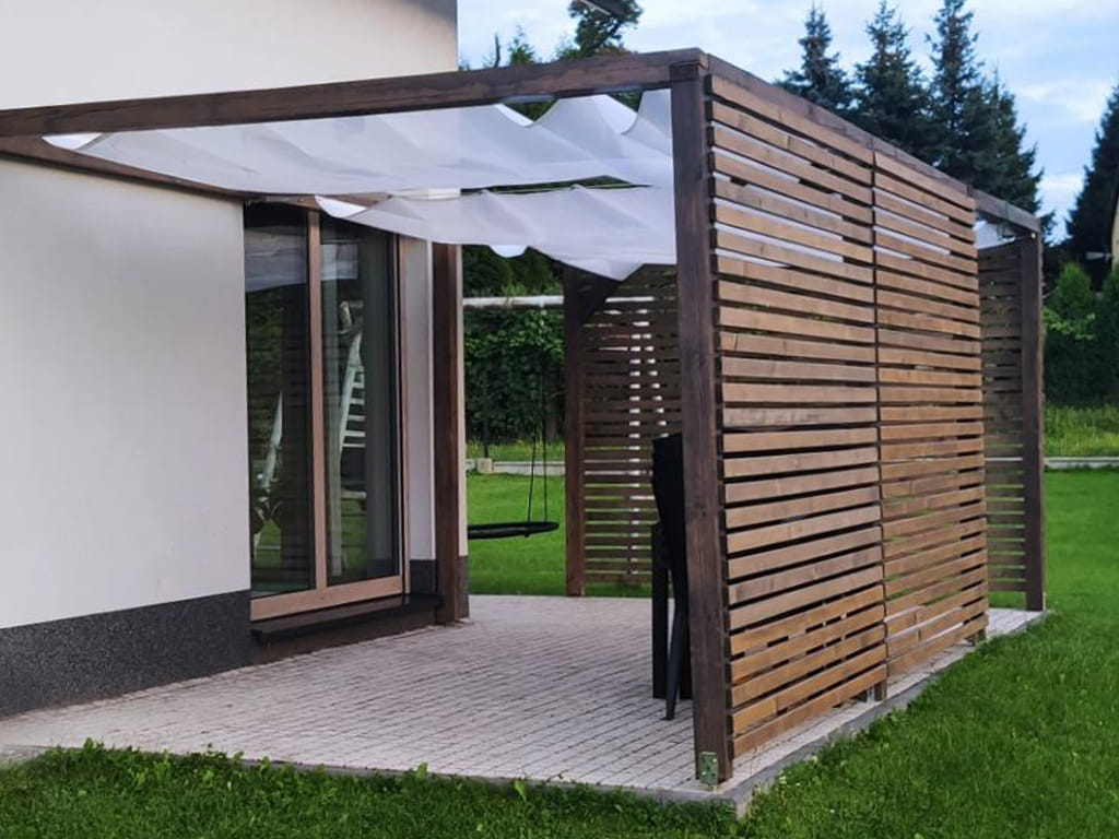 - stworzenie strefy cienia i osłona przed wiatrem nad tarasem wypoczynkowym,