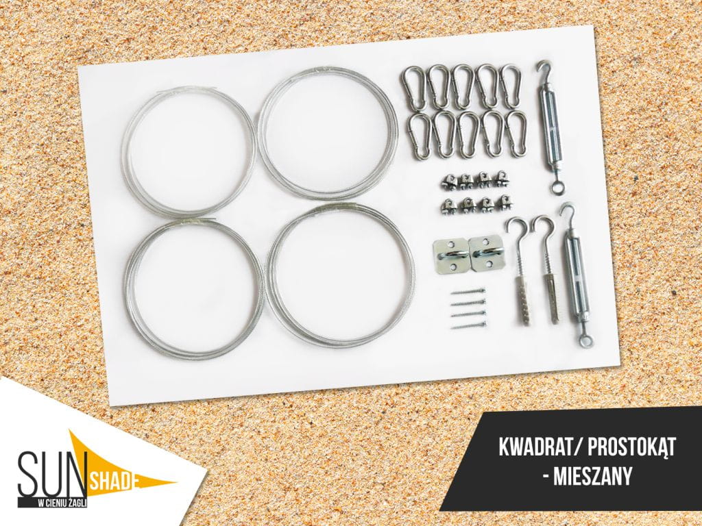 Zalecamy przy żaglach o bokach dłuższych niż 3m, zastosowanie dodatkowego punktu mocowania w połowie długości boku. W zależności ile będzie boków prostych, tyle należy dołożyć dodatkowych punktów montażowych. W cenę jest wliczone, wszycie dodatkowego mocowania, karabińczyk, uchwyt do montażu w konstrukcji (drewnianej, stalowej, betonowej),
