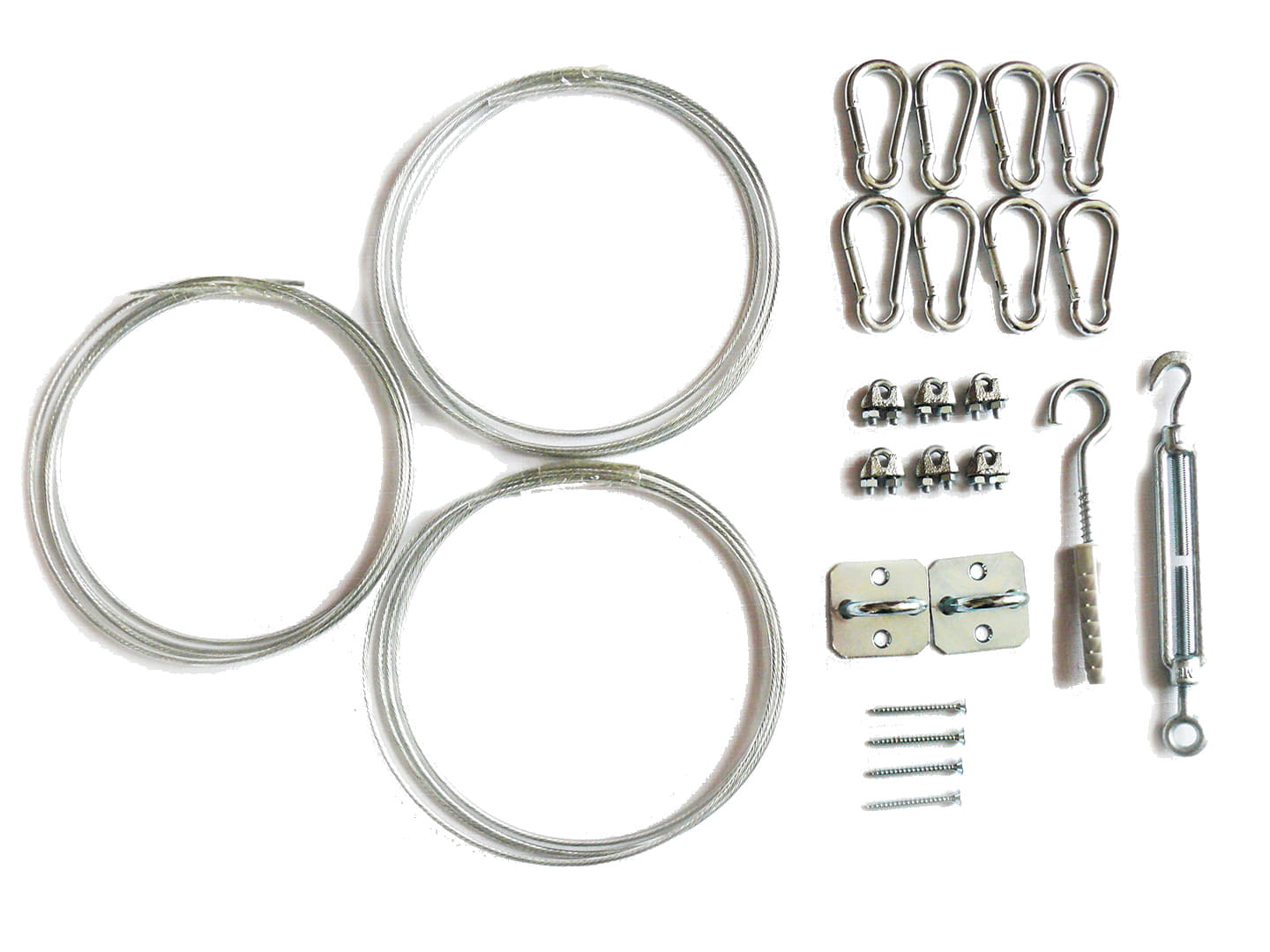 Zalecamy przy żaglach o bokach dłuższych niż 3 m, zastosowanie dodatkowego punktu mocowania w połowie długości boku. W zależności ile będzie boków prostych, tyle należy dołożyć dodatkowych punktów montażowych. W cenę jest wliczone, wszycie dodatkowego mocowania, karabińczyk, uchwyt do montażu w konstrukcji (drewnianej, stalowej, betonowej),