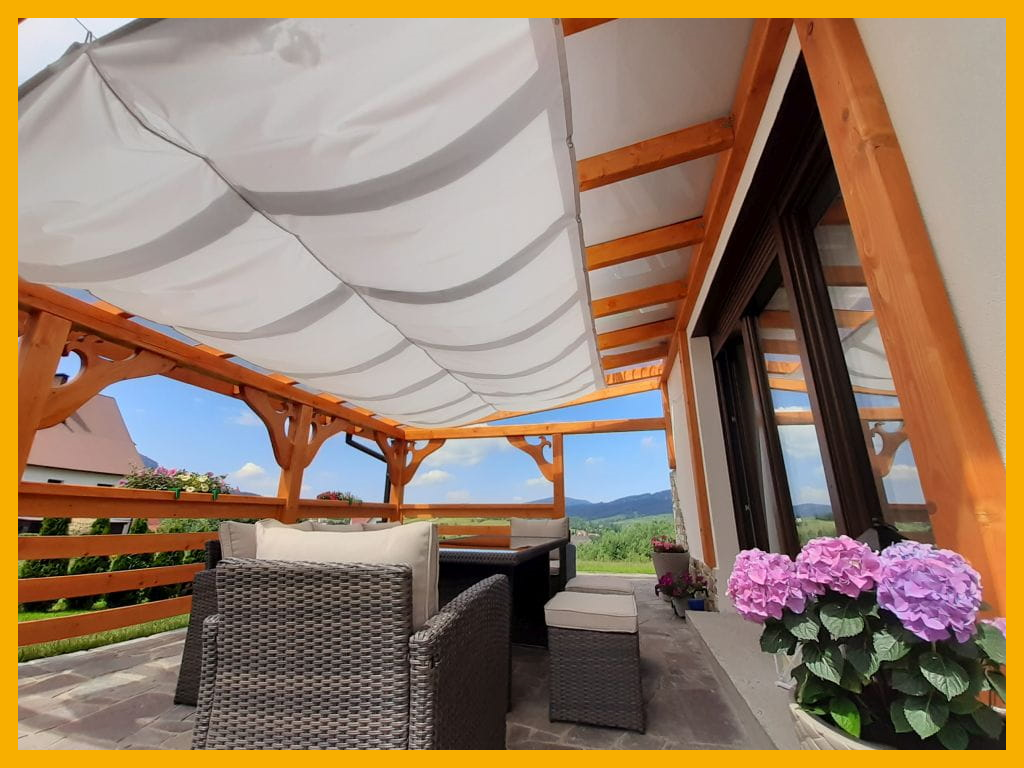 - stanowi doskonałą osłonę przed palącym letnim słońcem i lekkim deszczem,