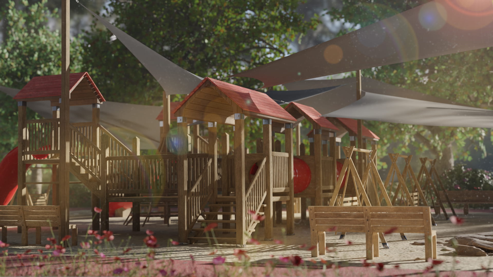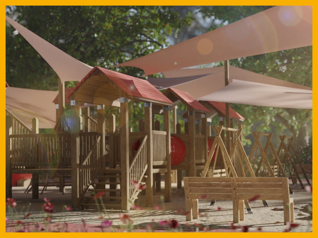 Żagle przeciwsłoneczne dedykowane na place zabaw na wymiar, skrojone i uszyte na miarę Twoich oczekiwań