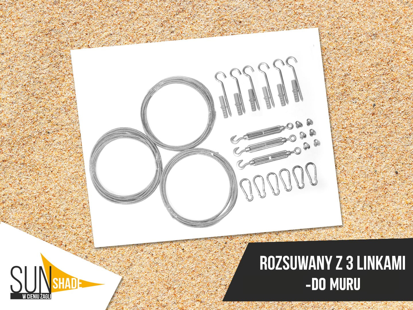 ZESTAW MONTAŻOWY do MURU dedykowany dla żagli rozsuwanych na 3 linkach